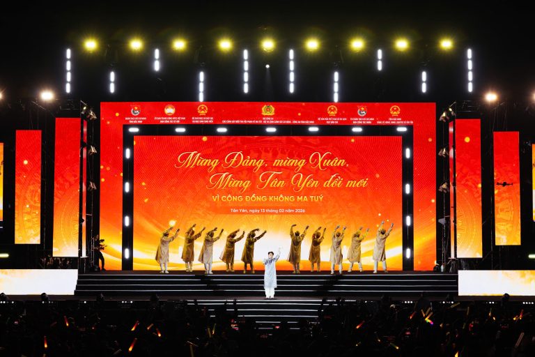 Tối 13/02/2026, tại Quảng trường xã Tân Yên, tỉnh Bắc Ninh, chương trình nghệ thuật “Mừng Đảng, mừng Xuân, mừng Tân Yên đổi mới – Vì cộng đồng không ma tuý” đã diễn ra thành công tốt đẹp.