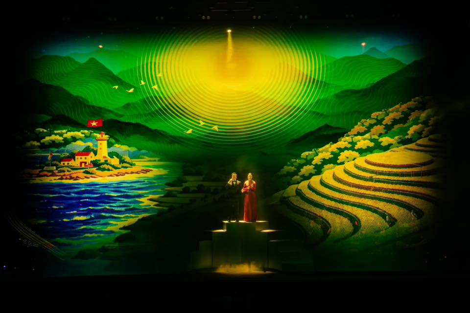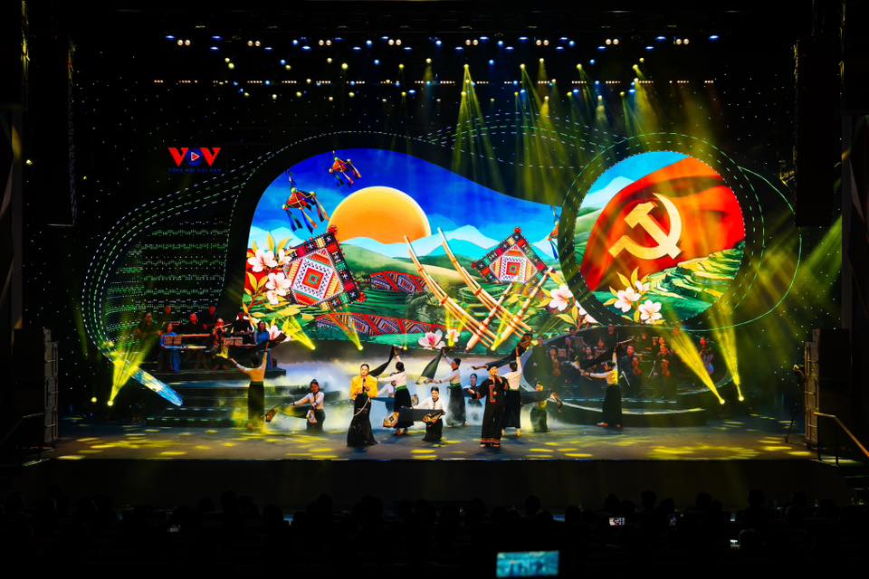 Được dàn dựng theo cấu trúc ba chương “Lời đất nước” – “Nhịp thời đại” – “Sắc đỏ thiêng liêng”, chương trình dẫn dắt người xem qua một hành trình nghệ thuật giàu chiều sâu. Từ những giai điệu truyền thống gợi nhớ ký ức văn hóa dân tộc, đến nhịp điệu trẻ trung mang hơi thở đương đại, và kết lại ở cao trào tôn vinh sắc đỏ thiêng liêng – biểu tượng của niềm tin, lý tưởng và khát vọng phát triển của đất nước.