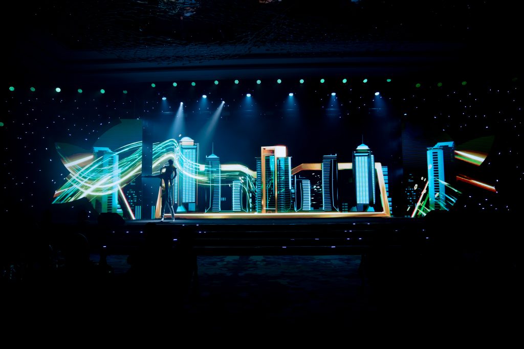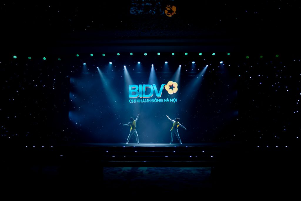 Hai cánh LED được tạo hình từ những đường cong thanh thoát mô phỏng dáng hoa mai nở, gợi sắc xuân khởi đầu và truyền tải tinh thần đổi mới, khát vọng vươn xa của tập thể BIDV. Hệ thống visual LED kết hợp hiệu ứng laser tương tác được xử lý tiết chế, hiện đại và trang nhã, mang đến trải nghiệm trình diễn giàu cảm xúc, phù hợp với tính chất của một lễ vinh danh cấp cao.